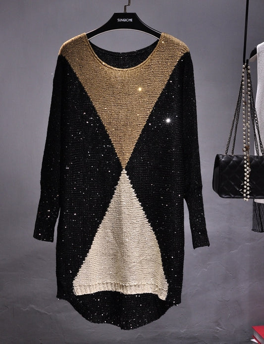 Sequined Patchwork Sweaters for Women