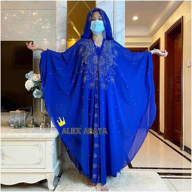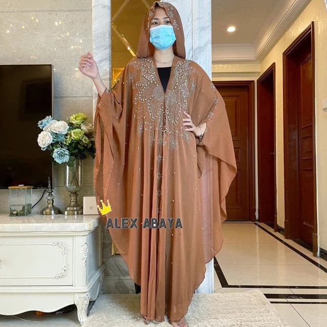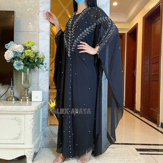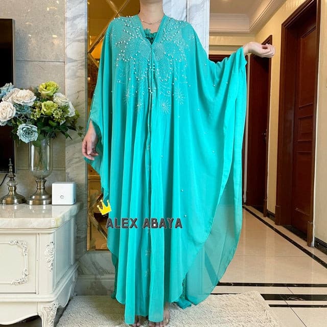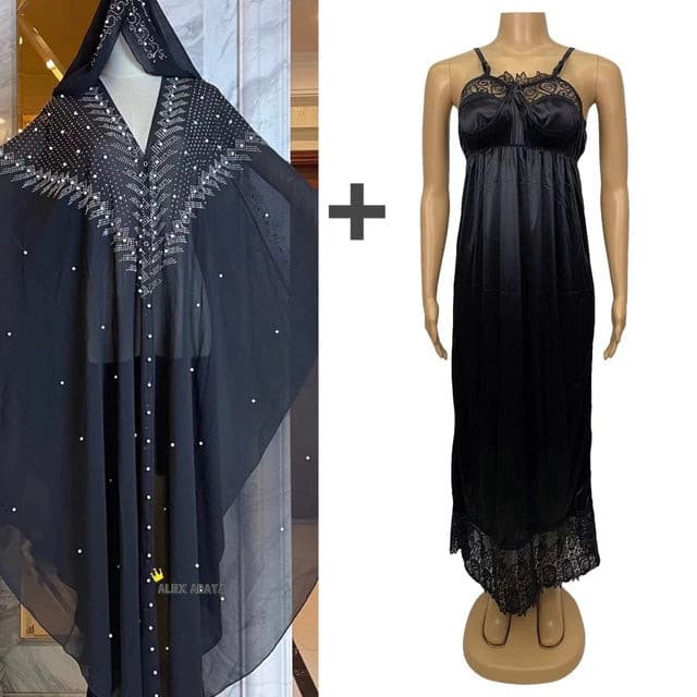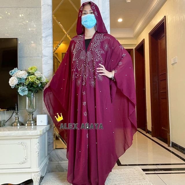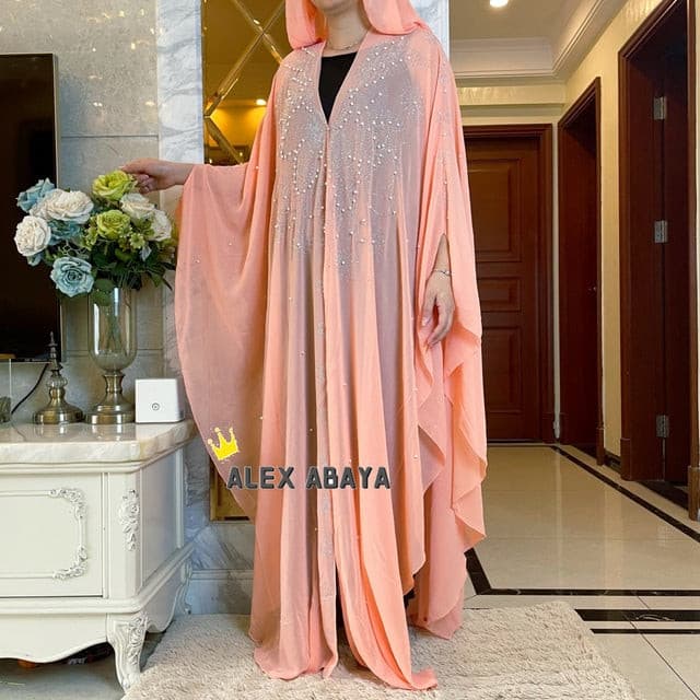 African Abaya Dubai Turkey Muslim Hooded Dress Women Chiffon Kaftan Beads Luxury Cardigan Plus Size Boubou Islamic Clothing