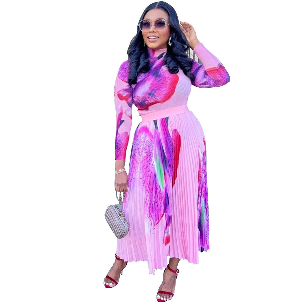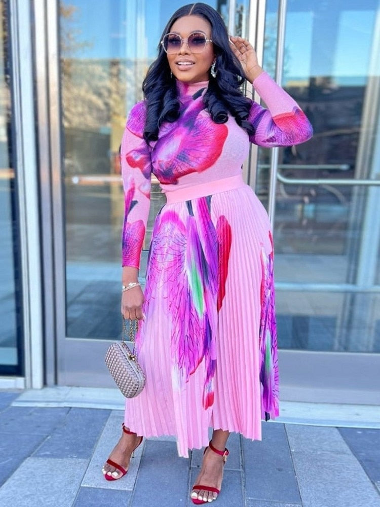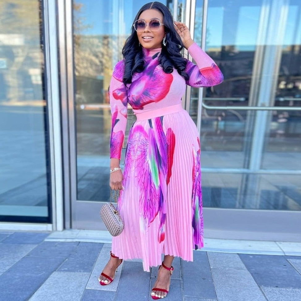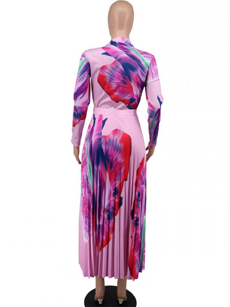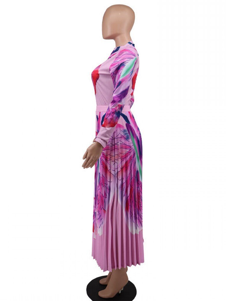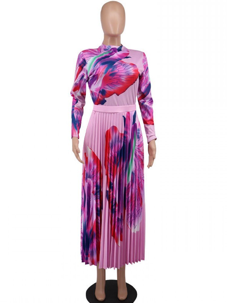African Dresses For Women Dashiki Autumn Spring Elegant Pleated Maxi Dress Ladies Traditional African Clothing Fairy Dreses