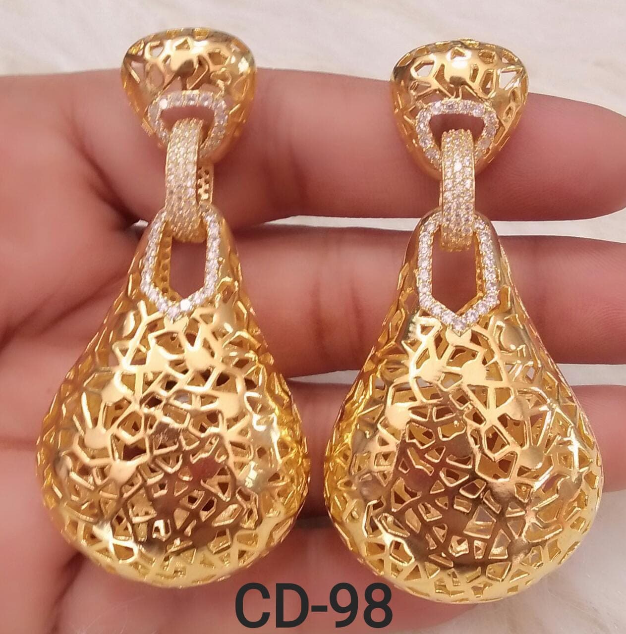 Crystal gold/silver zircon dangling ball Earring