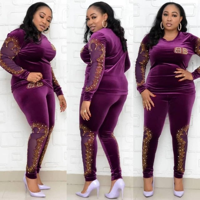 African Dashiki Velvet Two Piece Sets Tops Pants Women Turkey Ramadan Moroccan Clothing Sets