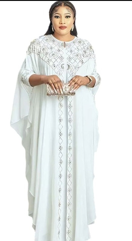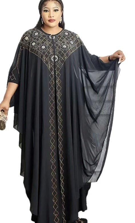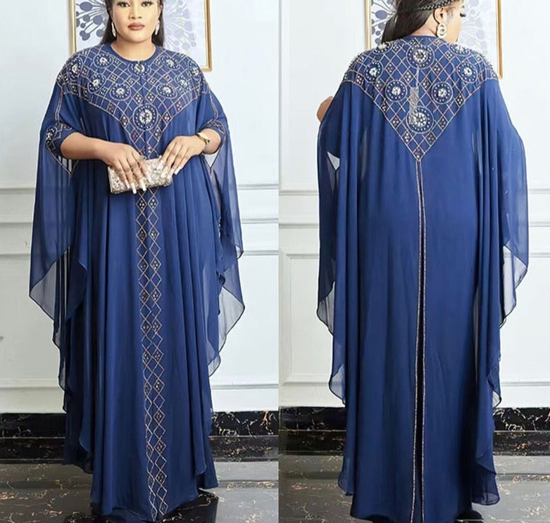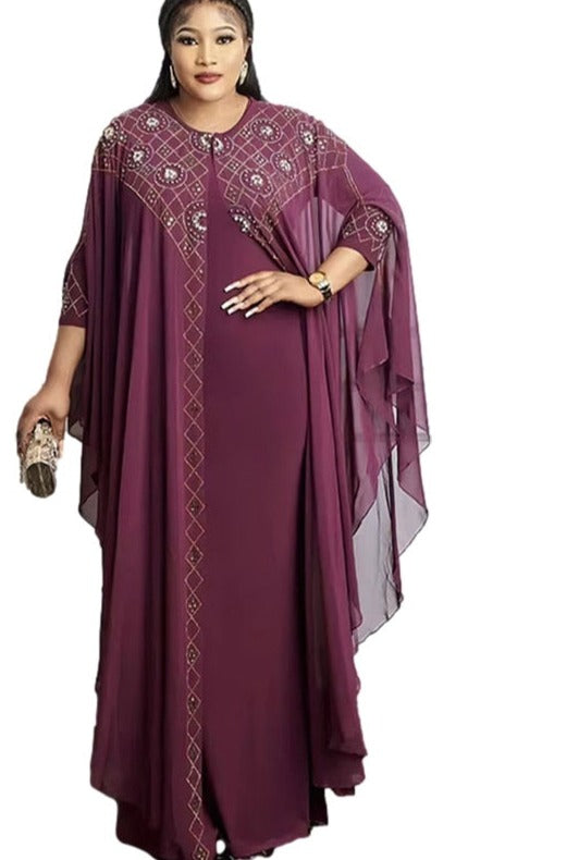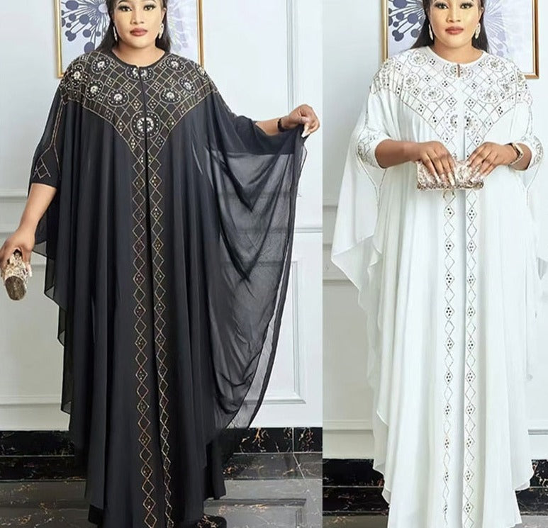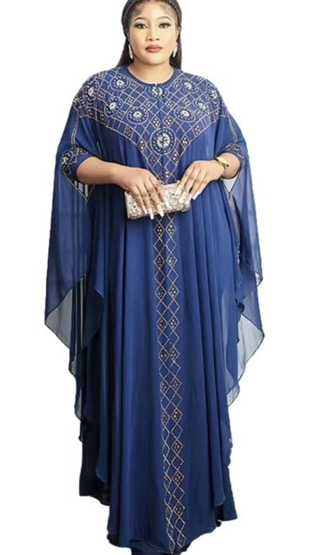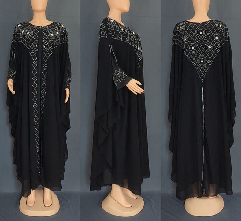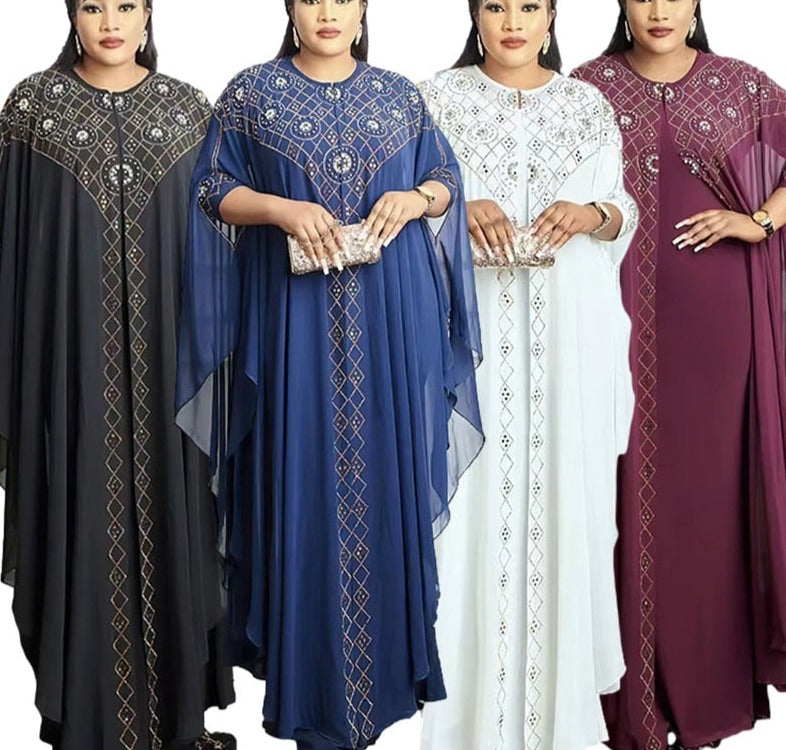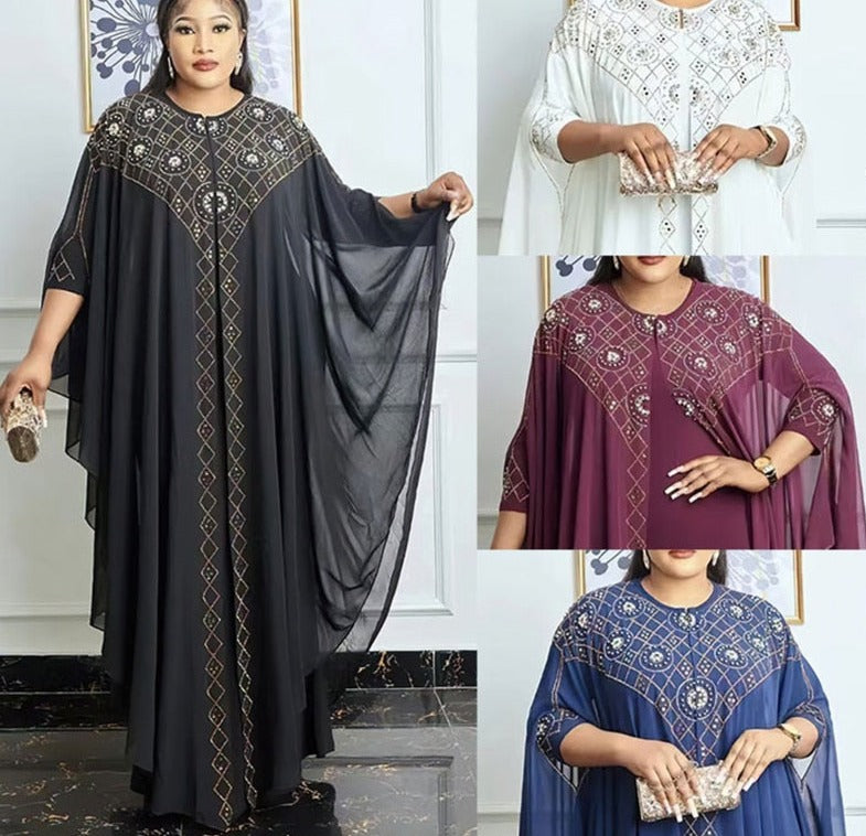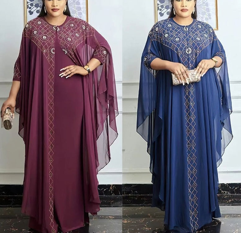 Two-piece African Dress for Women Kaftan African Clothing Luxury Rhinestone Robe Femme Chiffon Evening Long Dress Africa Clothes
