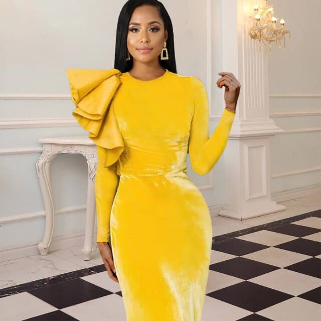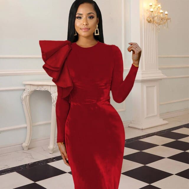 Women Long Sleeve Dress Bodycon Velvet Christmas Party Home Coming O Neck Ruffles Slim Elegant Evening Event Autumn Winter Gowns