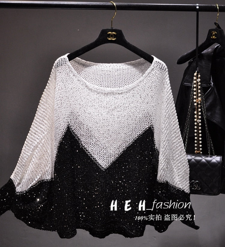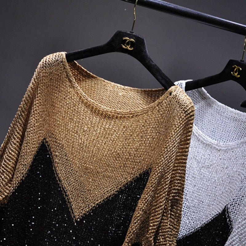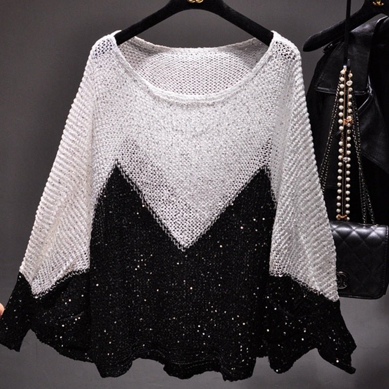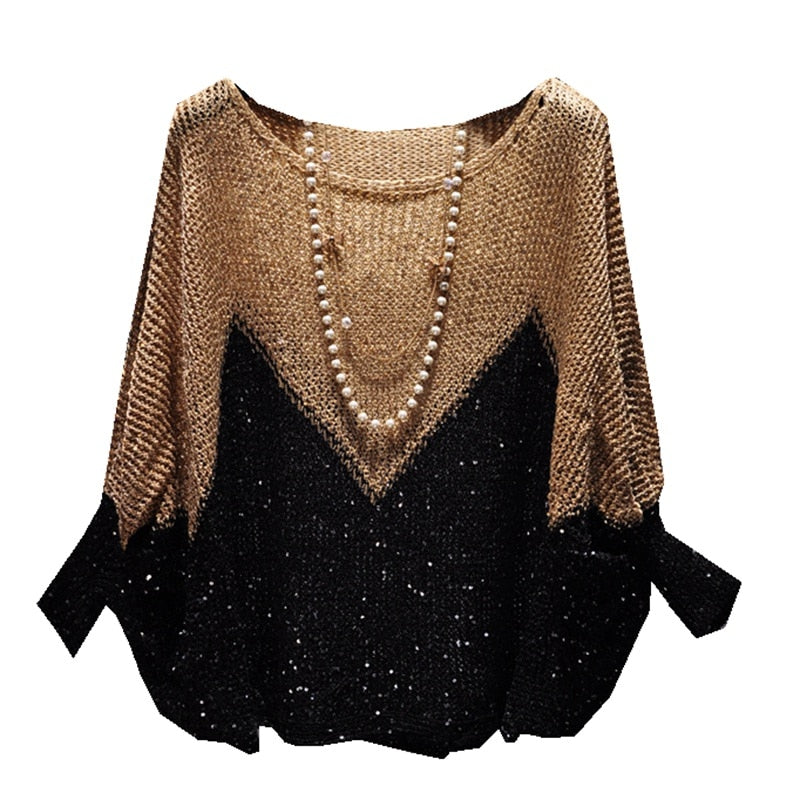 Sweater Women Round Neck Long Jumper Casual Knit Pull Femme Pullover Bling Bling Sequin Sweater